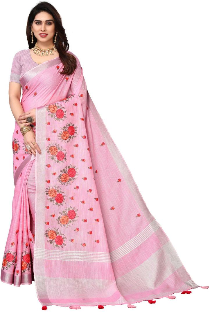Make a statement with this Embroidered Bollywood Linen Cotton Linen Saree (Pink) and experience the perfect combination of comfort, glamour, and traditional elegance.